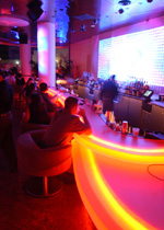 こちらも昨年7月にオープンしたばかりの話題のナイトクラブ。その名の通り、イメージカラーのポップなオレンジ色があちこちに散らばっている。それとは対