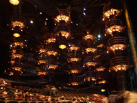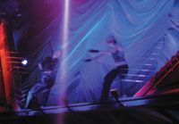 うな異様な雰囲気に包まれる。開演前にはこの柱から吊るされた琴や弓矢を背負ったパフォーマーが観客を驚かせる。照明デザイナーのLuc