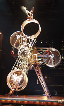 置の上でのアクロバット。ここで繰り広げられるパフォーマンスはシルク・ドゥ・ソレイユが今までに挑戦してきたアクロバットの中で最も高い危険を伴うと言
